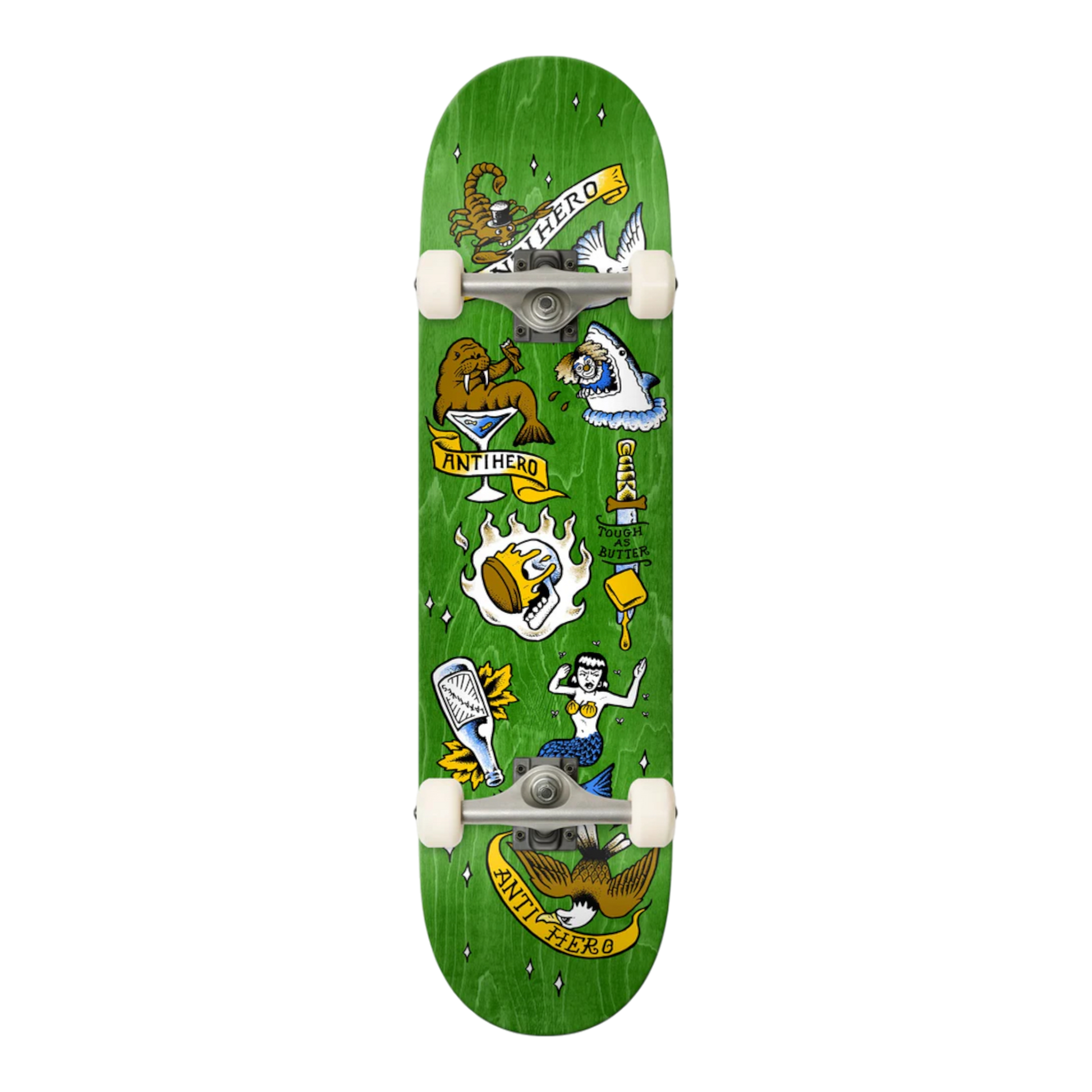 8.25" wide complete skateboard from Anti Hero with No Regerts graphic.