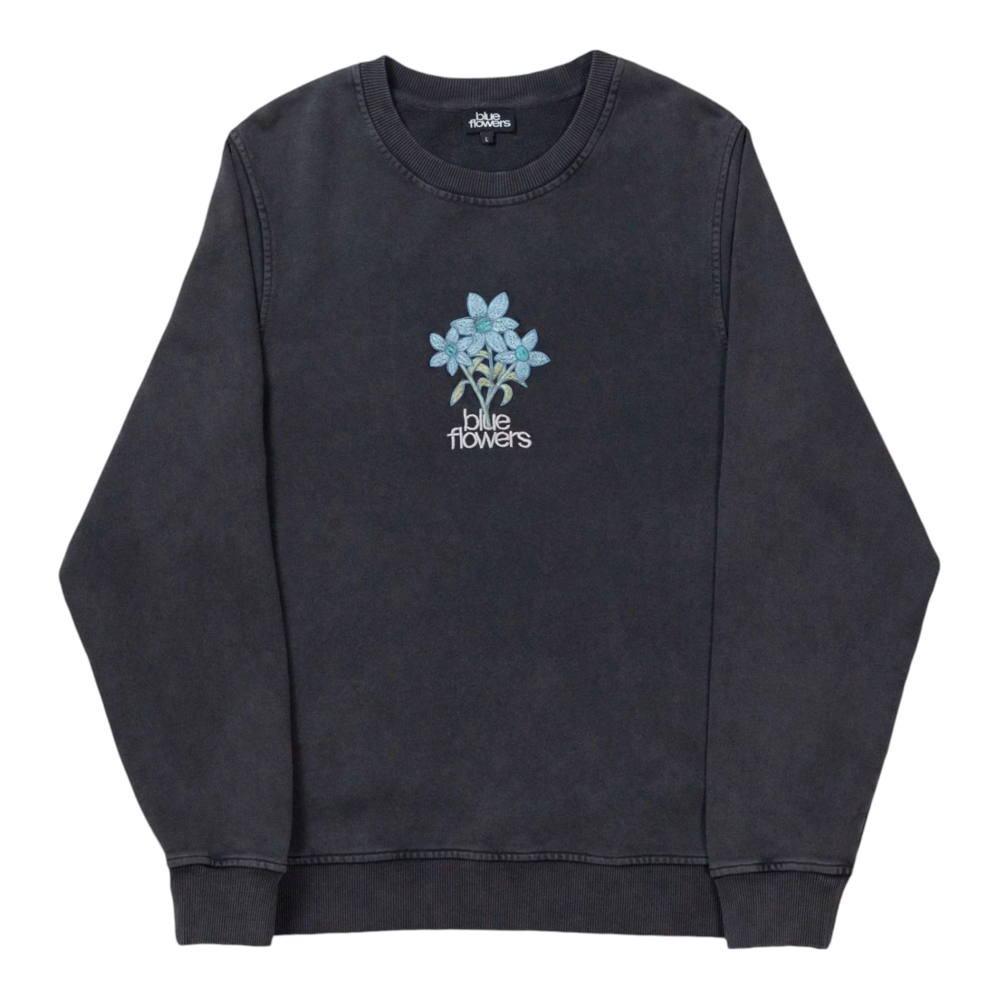 Blue Flowers - Washed Flower Sweatshirt - Stone Wash