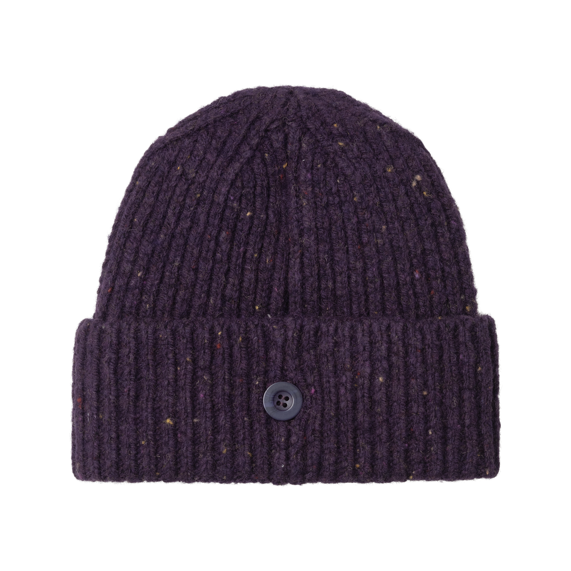 The Anglistic Beanie is knit from a tactile blend of lambswool, cotton, and Acrylic yarn in a stretchy rib stitch, and features a subtly speckled look throughout. Its cuff is detailed with a woven Square Label on the front, and a fixed faux-horn button at the back.