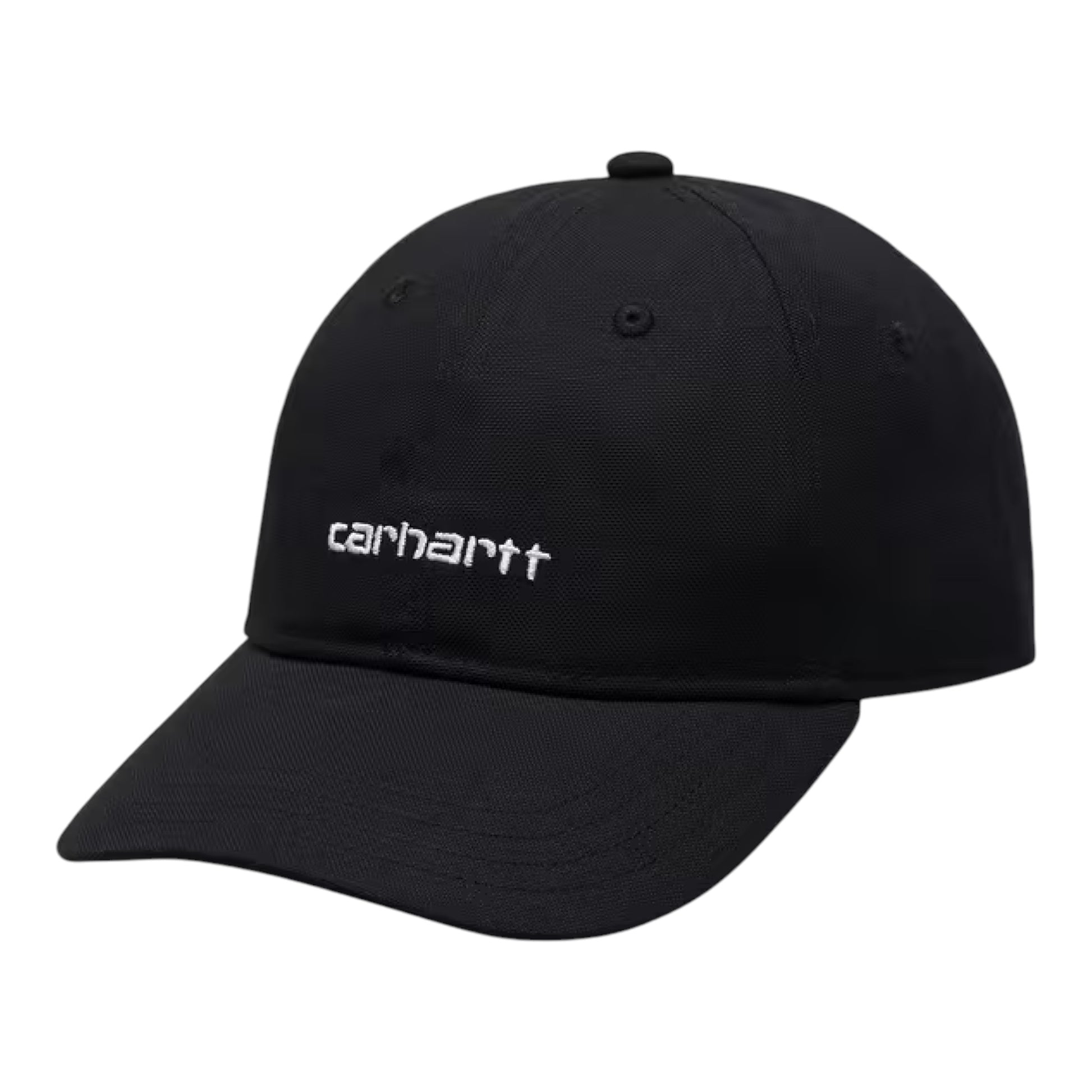 The Canvas Script Cap is an unstructured and unlined six panel style with a firm, curved peak. Made of cotton canvas, the cap has been garment-washed for softness. It is embroidered with the Carhartt WIP Script Logo on the front and features an adjustable strap to ensure a perfect fit.