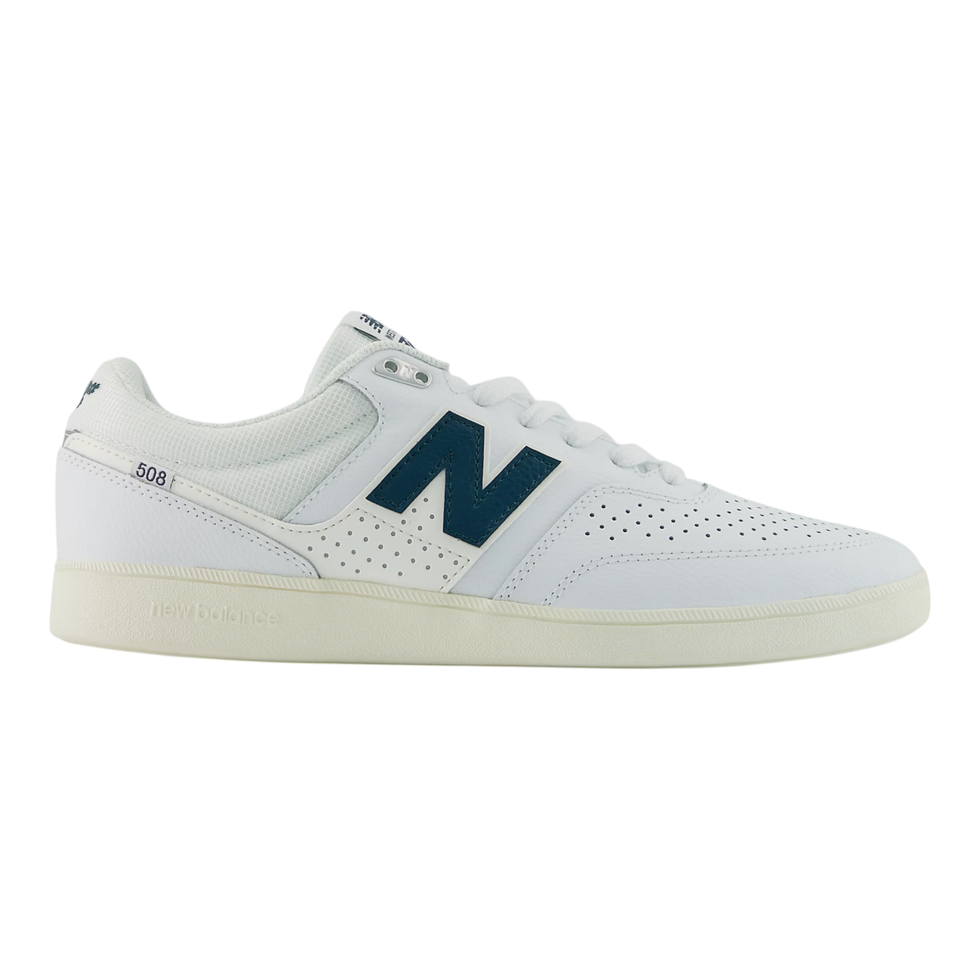 The Pro Model for NB# team rider Brandon Westgate, the NM508 is built on our classic indoor soccer outsole which gives you the board feel of a vulcanized shoe with the impact protection of a cupsole. The upper is made up of a perforated suede, one-piece reinforced toe to help minimize blowouts, while the foam backed mesh collar provides a comfortable, but snug fit. The exposed foam and mesh tongue help give the NM508 a retro feel while providing breathability while skating and the reflective heel detailing is designed to catch the light.