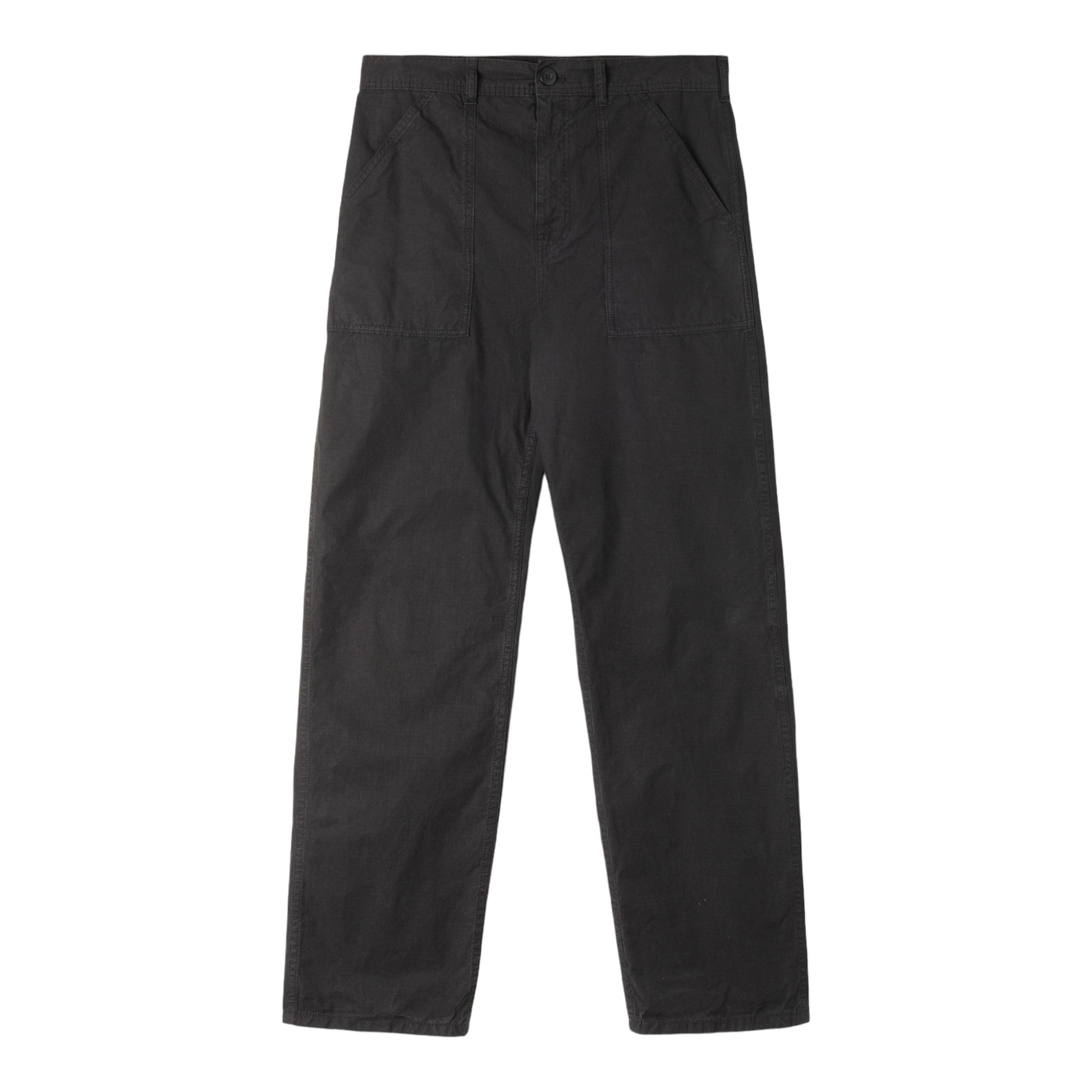 The Fat Pant is a straight relaxed fiting fatigue pant with a shorter rise than our OG fatigue fit. Still has the same tough construction throughout, with double chain-stitched, flat-felled seams. Available here in garment dyed vintage feel navy sateen